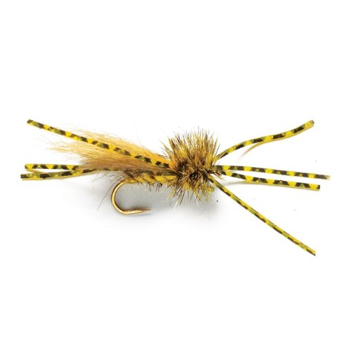 Golden Stones (Perlidae) are the most common type of large stoneflies and big trout love them. This fly pattern is a big buggy stone that works well when the adults are in the vegetation near the stream. On windy days these flies can be blown into the water. Fish this trout fly near a cut bank or sweeper downstream from some overhanging vegetation, or on a particularly windy day when the stones are out. In natural. Flies available in sizes: 10, 12.
