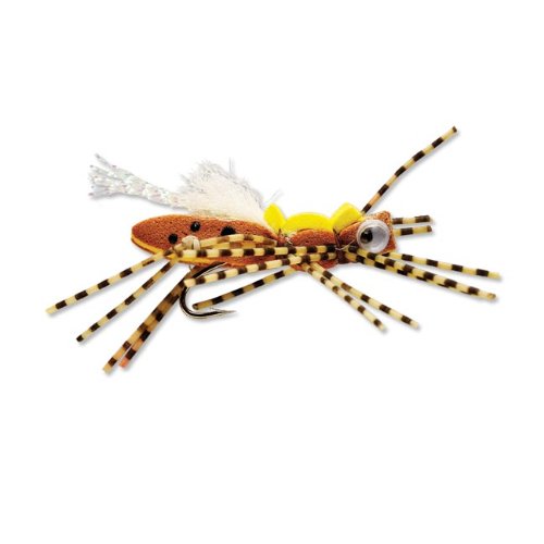 Sandwiched foam, not unlike surfboard construction gives these hopper flies their great buoyancy. Fish this along the banks during hopper season for some great strikes. Cartoon eyes add to the appeal for big fish. Big and easy to see. Foam hopper flies in yellow. Sizes: 6, 8.