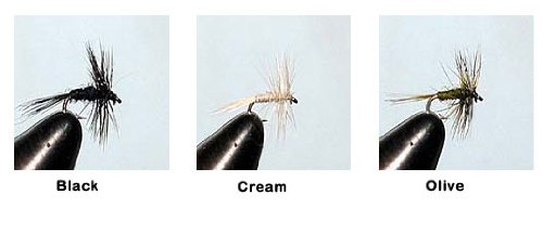 The Midge is a good basic midge imitation. There are many midge patterns and this tie is a staple in many anglers boxes. It is tied without wings with a tail body and hackle. Colors available are black cream and olive.